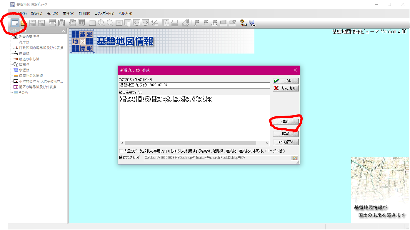 - ダウンロードしたファイル(大抵は複数になると思います)をFGDVで読み込みます