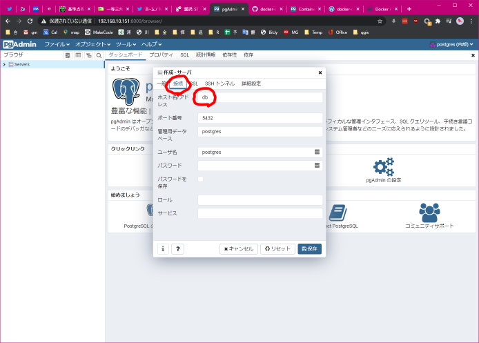 ブラウザで http://コンテナの母艦サーバ:8000 にアクセス