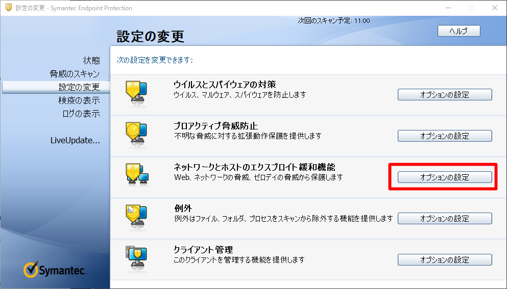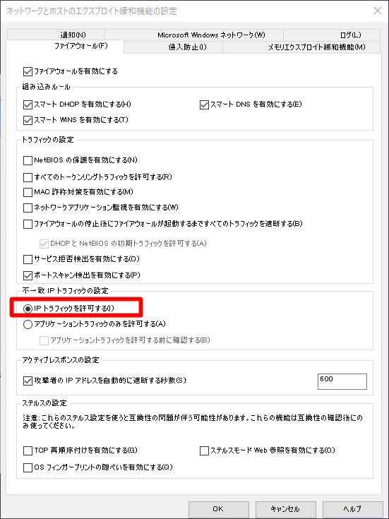 設定の変更 > ネットワークとホストのエクスプロイト緩和機能