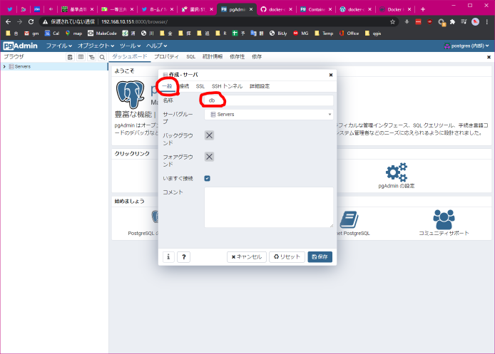 ブラウザで http://コンテナの母艦サーバ:8000 にアクセス