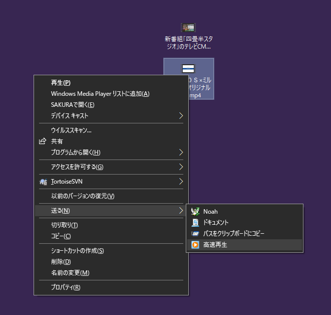 ということで uwsc で動画や音楽を「送る」から高速再生するスクリプトです